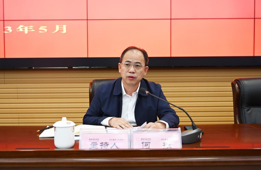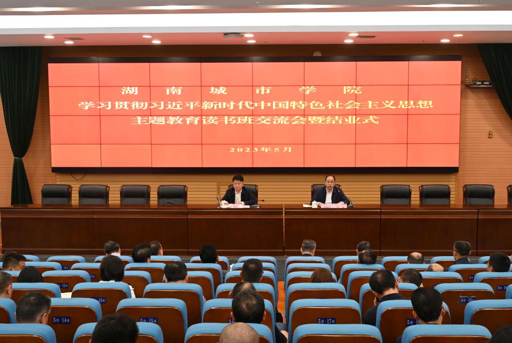 本网讯(记者 文彦波)5月8日,米兰体育网页版学习贯彻习近平新时代中国特色社会主义思想主题教育读书班交流会暨结业式在图书馆报告厅举行。校党委书记汤放华在会上作总结讲话,党委副书记、校长何振主持,在家校领导夏宏宇、雷存喜、陈列尊、吕贤军以及读书班学员参加会议。