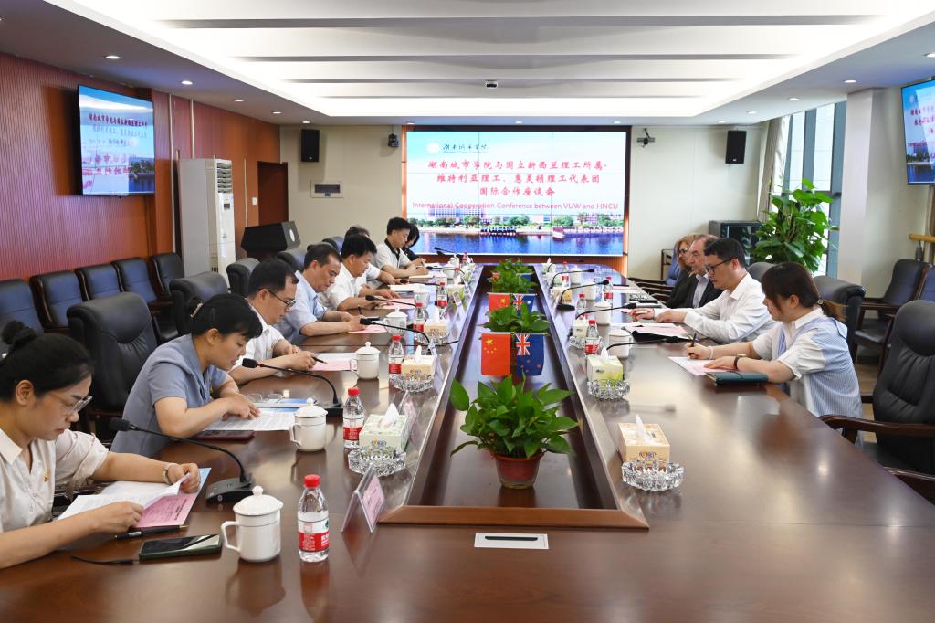 本网讯(供稿:国际合作与交流处)6月13日,国立新西兰理工所属维特利亚和惠灵顿理工学院国际创新与产业参与处处长Bryan Read、创意与表演艺术学院项目负责人Brenda Saris、太平洋教育集团(PEAL)总经理李肖恩、中国区市场经理李春一行4人访问我校,校党委书记汤放华,副校长雷存喜在一办公楼一会议室会见了来访客人,并就深化两校合作举行座谈会。