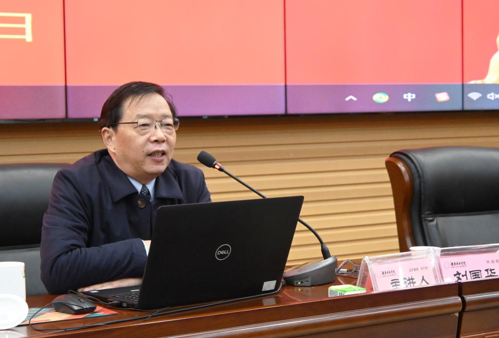 本网讯(记者 博夕)为进一步提高我校干部的理论素养、党性修养、政治担当和履职能力,12月16日,米兰体育网页版2023年干部培训班暨党委理论学习中心组(扩大)2023年第十三次集体学习在图书馆报告厅举行。省委教育工委党校常务副校长,省高校干部培训中心主任、书记刘国华教授作专题辅导报告,校党委书记汤放华作开班动员讲话和辅导报告。副校长谭献良出席。培训班由党委委员、组织部部长吕贤军主持。