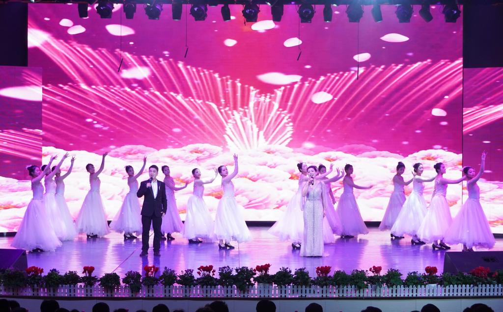 本网讯(通讯员 王露)鲜花盛开映党辉,歌舞传情心向党。 2023年12月28日晚,“学习二十大 永远跟党走 奋进新征程”元旦晚会在学校音乐厅燃情上演。全体校领导与400余名师生代表欢聚一堂,共贺佳节、喜迎新年。