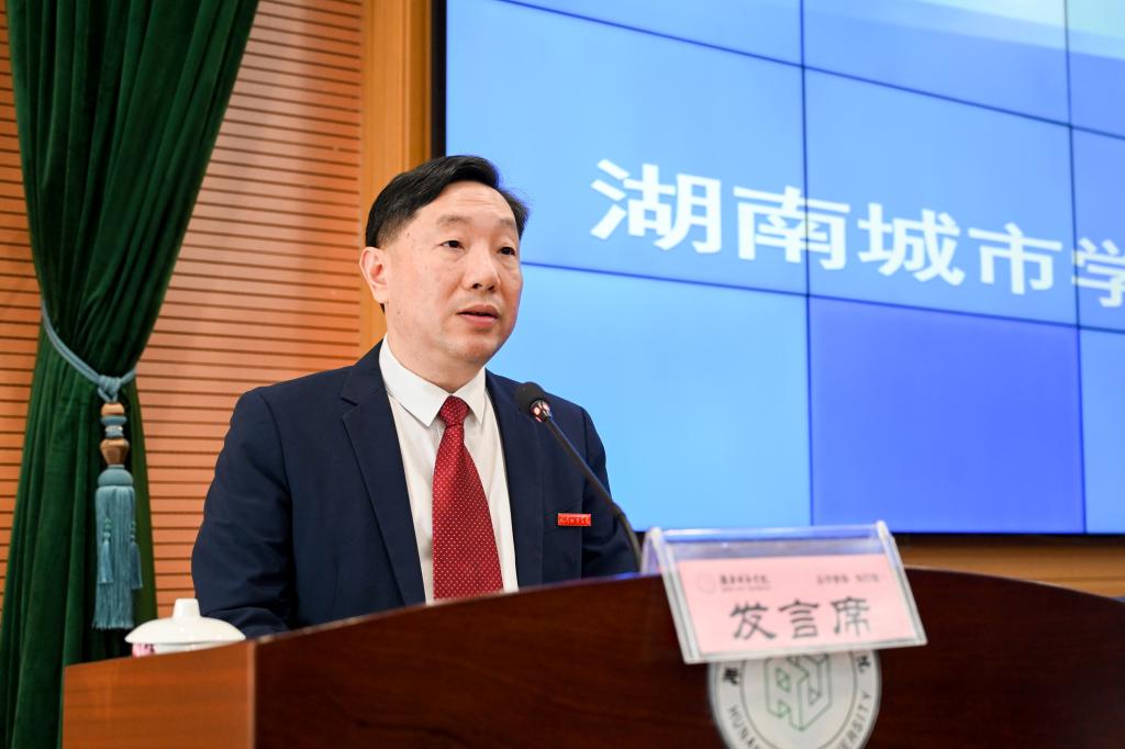 党委书记汤放华发表讲话。他指出,2023年是学校发展历史中至关重要的一年,我们高举习近平新时代中国特色社会主义思想伟大旗帜,以深入开展学习贯彻习近平新时代中国特色社会主义思想主题教育为主线,全面落实党中央、省委省政府、省教育工委决策部署,踔厉奋发、勇毅前行,一件接着一件干、一事连着一事成,办学层次实现历史性跨越,干部队伍、师资队伍、人才培养质量、创新科技服务、平台建设、基础设施等都取得了突出成绩。高质量发展的基础不断夯实,向前发展的势头持续向好,学校高质量发展迈出坚实步伐。