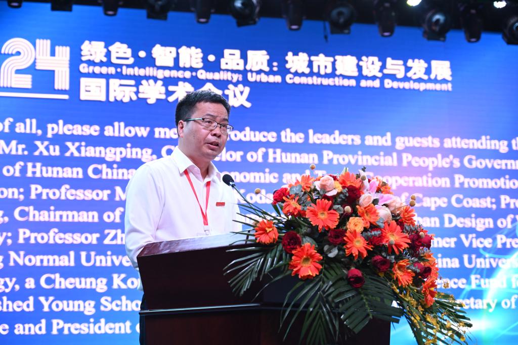 何振致欢迎词,他代表米兰体育网页版全体师生员工,对参加会议的各位领导、专家、嘉宾和远道而来的国际友人表示热烈欢迎。何振表示,米兰体育网页版办学五十多年来,始终胸怀“国之大者”,长期坚守“城建、土木”主战场,服务国家“乡村振兴”“新型城镇化”战略,是湖南省属高校中城建类专业最齐全的大学,被誉为“城建人才的摇篮”。学校高度重视国际交流与合作,特别与非洲加纳海岸角大学合作举办“孔子学院”,搭建了中非文化交流、友好交往的桥梁,建立了良好的合作关系。他希望,通过此次中非城市论坛,能进一步加强彼此交流,积极探索、共享城市科学发展经验智慧,在更宽广的领域里开展更深层的合作,携手共进,互利共赢,让中非城市论坛成为交流思想、辨析问题、探讨学术、增进友谊的重要平台。