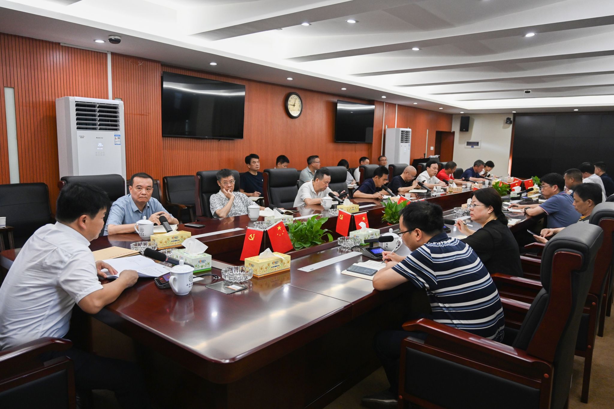 本网讯(通讯员 周文娟)7月4日下午,学校党委理论学习中心组在办公楼一会议室举行2024年第九次集体学习。党委书记汤放华主持会议并讲话,校党委理论学习中心组成员参加会议。