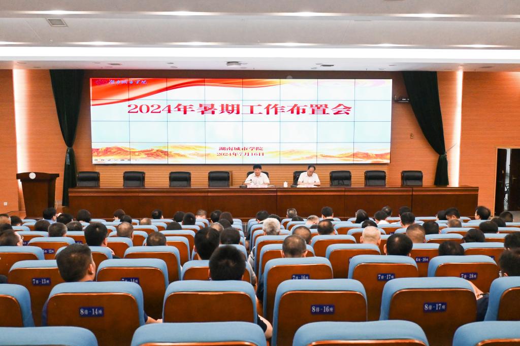 本网讯(通讯员 钟仁理)7月16日下午,学校在图书馆报告厅召开2024年暑期工作布置会。党委书记汤放华主持会议并讲话,校长何振部署暑期学校工作。全体在家校领导和副处级以上干部参加会议。