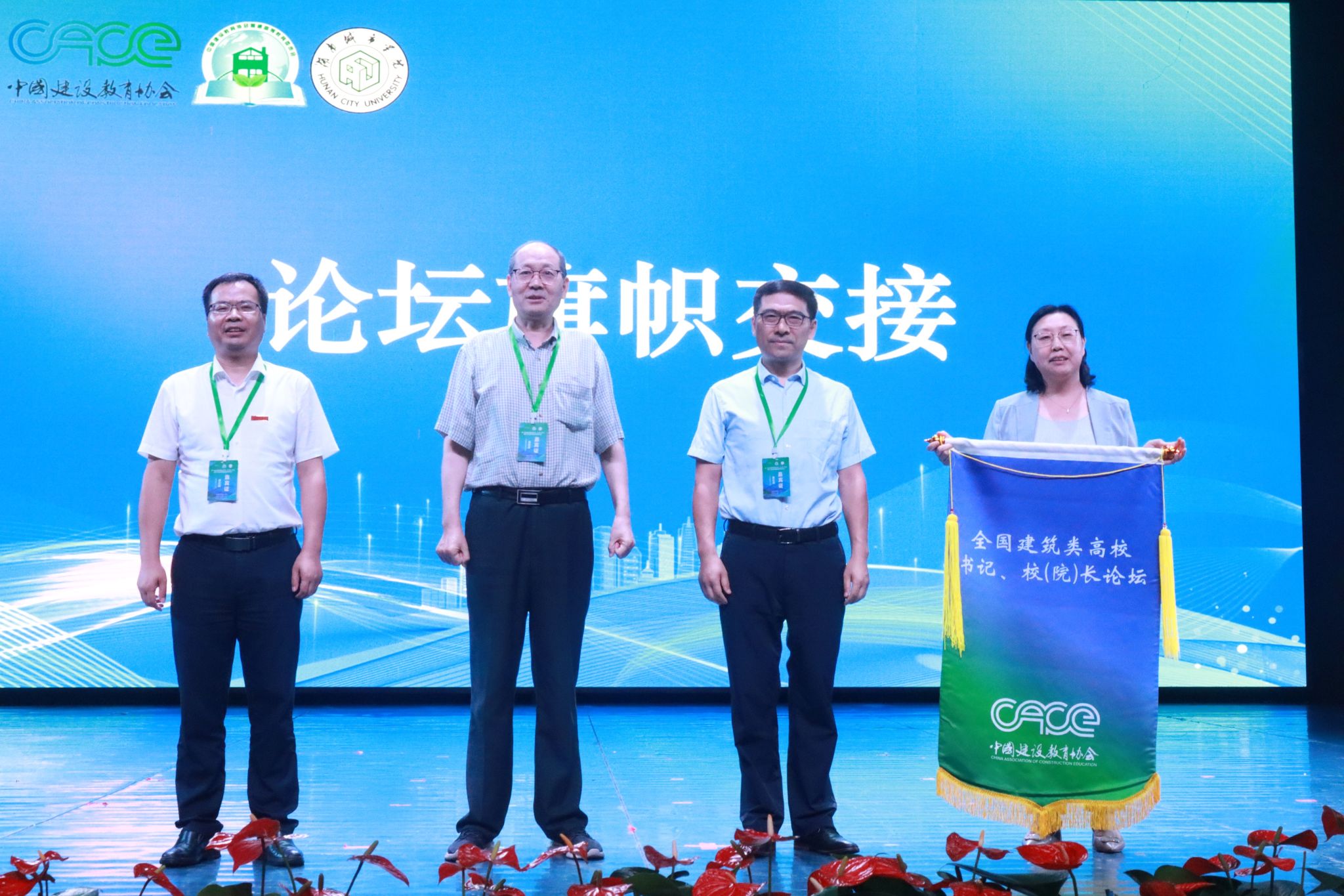 在闭幕式阶段,米兰体育网页版党委副书记袁志成、中国建设教育协会副理事长高延伟、中国建设教育协会普通高等教育工作委员会秘书长陈红兵和下一届承办单位青岛理工大学党委常委、副校长岳丽宏进行了会旗交接。