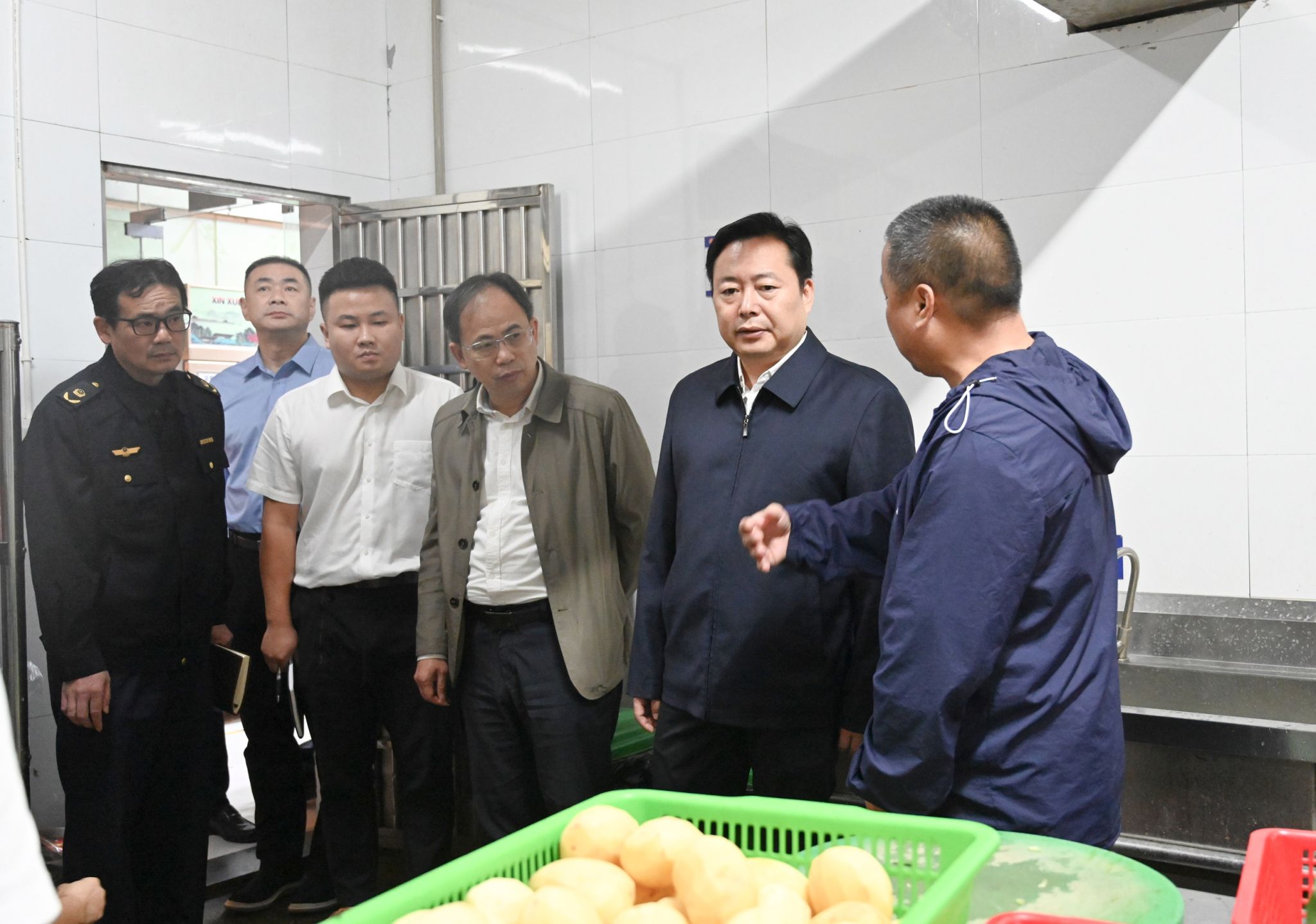 本网讯 10月15日上午,益阳市委副书记、市长熊炜来我校督导食品安全工作,强调各级各部门要始终绷紧校园食品安全这根弦,筑牢校园食品安全防线,确保师生“舌尖上的安全”。校长何振,党委委员、组织部部长吕贤军陪同督导。