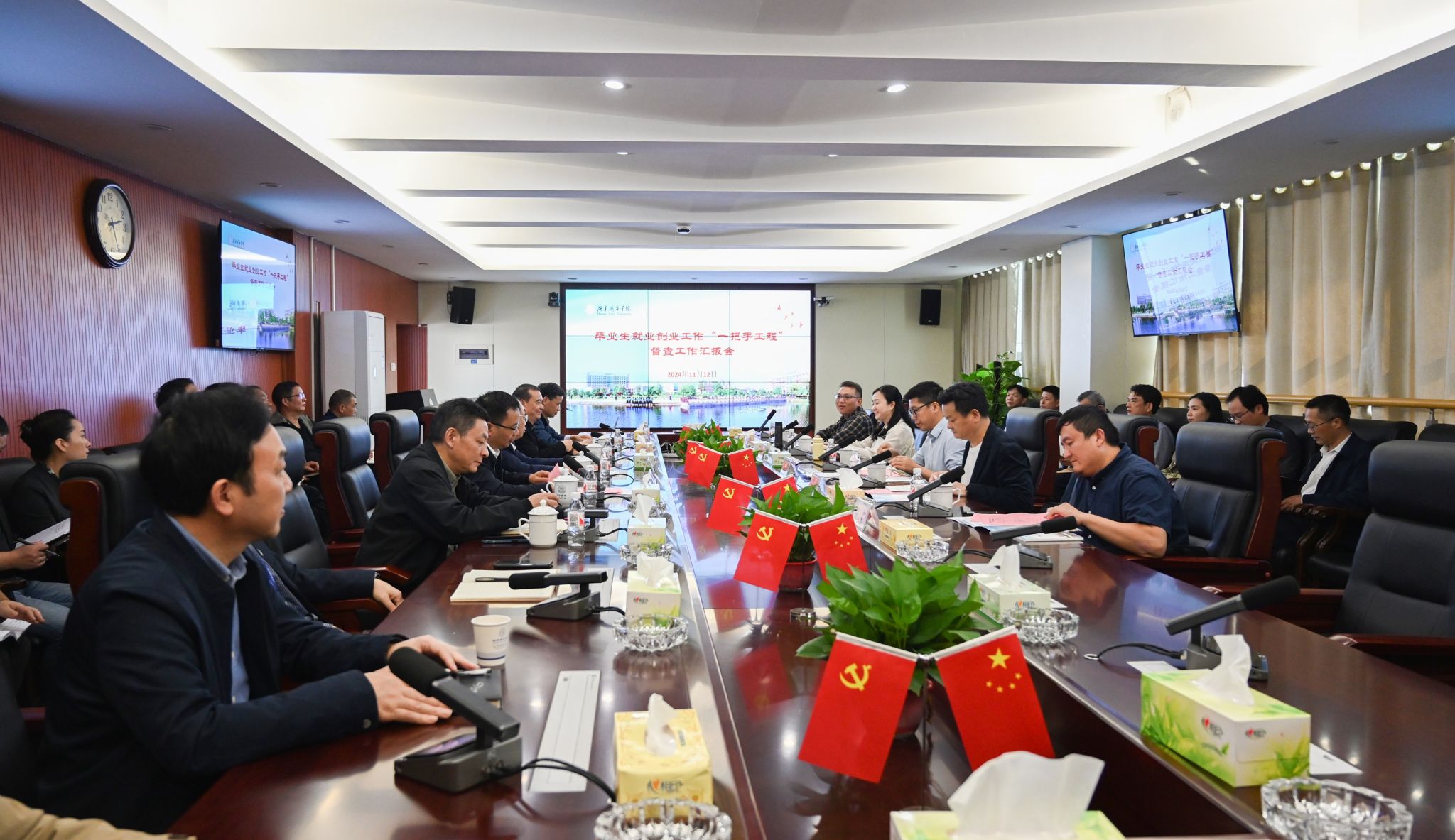 本网讯 11月12日,我校召开2024年就业创业工作“一把手工程”督察汇报会。湖南省就业创业工作“一把手工程”督查组一行五人听取汇报并实地考察,党委副书记、校长何振,副校长雷存喜,党委副书记袁志成出席会议。会议由袁志成主持。