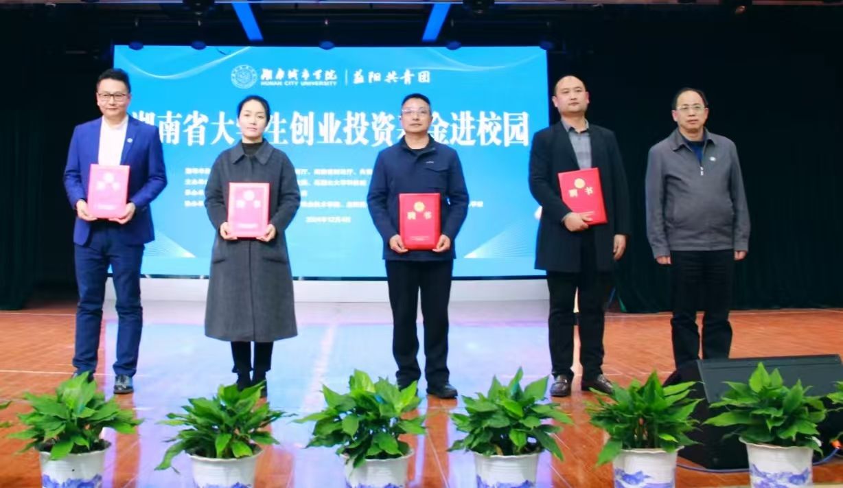 本网讯(通讯员 孔军)12月4日,由省委宣传部、省教育厅、省财政厅、共青团湖南省委指导,湖南日报社、湖南财信金控集团、岳麓山大学科技城主办,我校与共青团益阳市委联合承办的“湖南省大学生创业投资基金进校园活动”在学生活动中心举行。团省委副书记叶妙,益阳市委副书记、市委统战部部长邓斌,团市委书记王思婷,我校校长何振,党委副书记袁志成,湖南工艺美术职业学院、益阳职业技术学院、益阳医学高等专科学校、益阳师范高等专科学校相关校领导出席仪式。