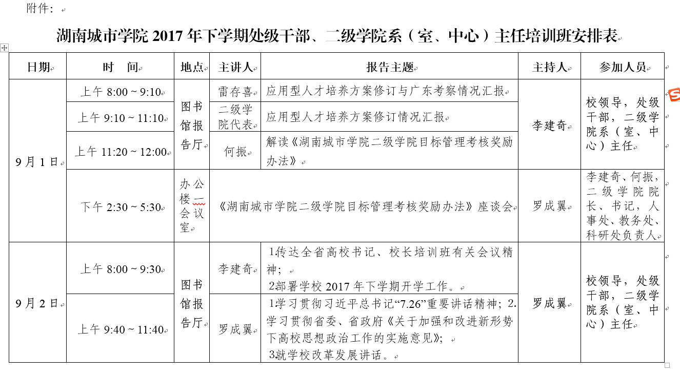 具体培训安排见《米兰体育网页版2017年下学期处级干部、二级学院系(室、中心)主任培训班安排表》。