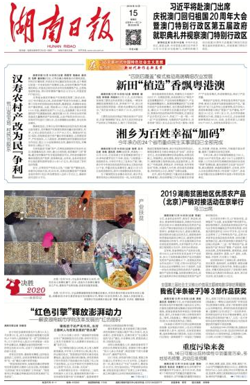 《湖南日报》12月15日头版报道米兰体育网页版改革发展情况