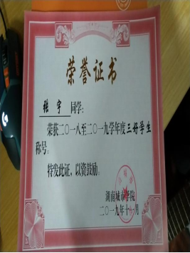 校三好学生,获得米兰体育网页版第十一届数学竞赛二等奖,机械与电气工程学院合唱比赛团体第一名的荣誉。