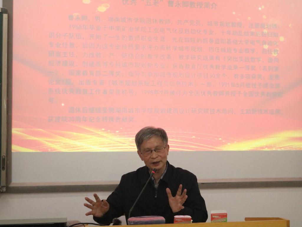 曹永卿,城市规划教授,注册规划师。1991年5月被授予建设部系统优秀教育工作者荣誉称号;1998年9月被评为全国优秀教师并授予全国优秀教师称号。退休后继续受骋米兰体育网页版规划建筑设计研究院技术顾问,主助新技术应用,获建院30周年纪念特殊贡献奖。曹永卿教授以“不忘初心,砥砺前行-我的教书育人”为题分享了个人成长奋斗的经历,勉励青年学生脚踏实地,努力奋斗,实现人生价值。