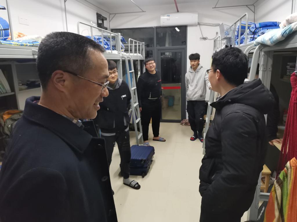 2021年2月28日,学校学生全面开学,学子们正式开启了牛年学习新征程。为深入了解学生到校情况、学习生活准备情况等,3月1日晚七点半,学院领导邓曙光、龚彬、刘辉、周理带领全体辅导员、班主任分五组深入学生公寓走访学生。