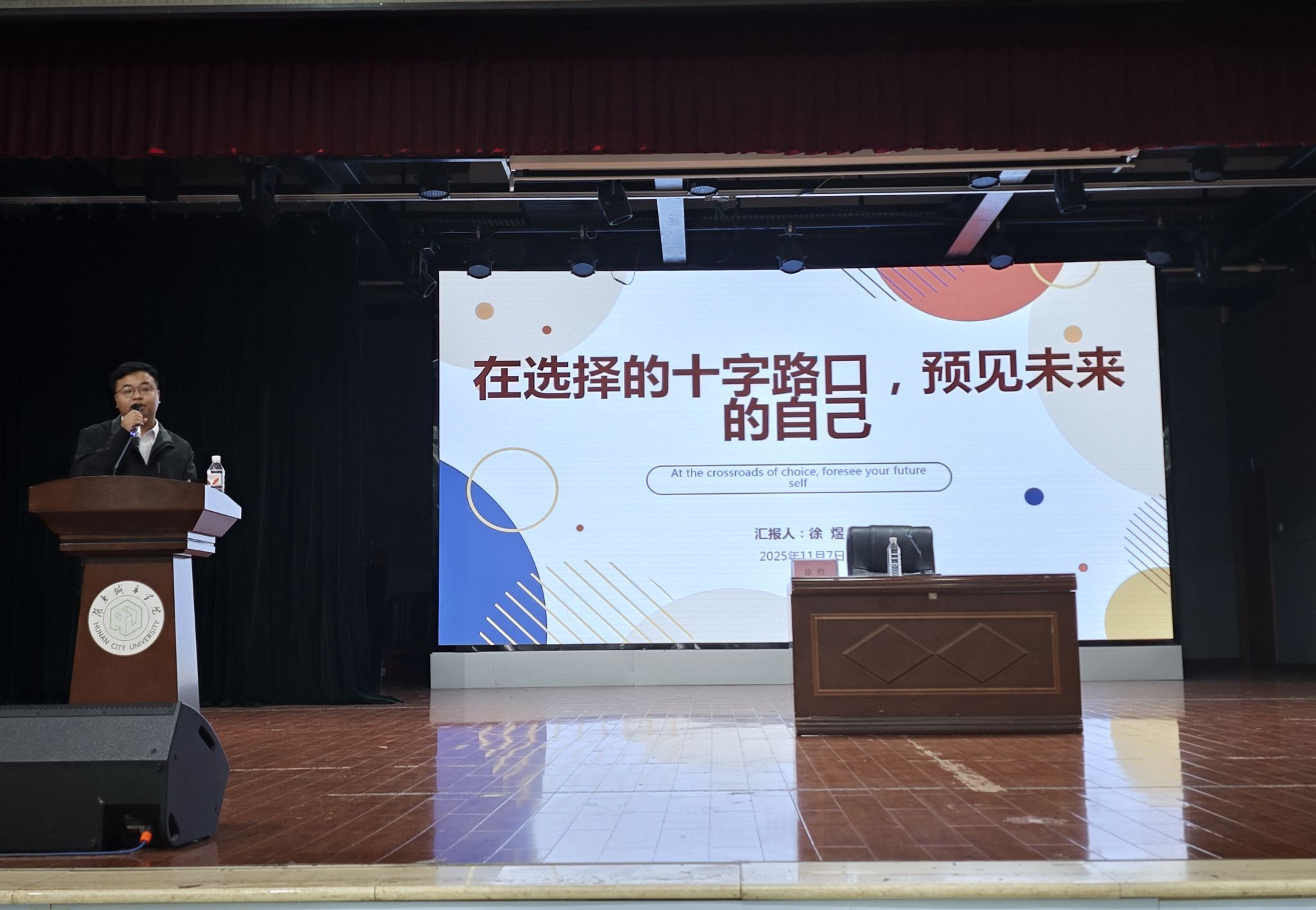 如今,徐煜深耕湖南省衡阳市常宁市基层一线。他以亲身经历为蓝本,生动讲述了基层工作的挑战与收获,分享了如何将大学专业知识转化为服务群众的实践能力、在扎根基层中实现个人价值的心路历程。他的分享让同学们对“选调生”职业身份有了更具体的认知,更直观感受到城院校友在基层岗位上践行使命的责任担当,为办学