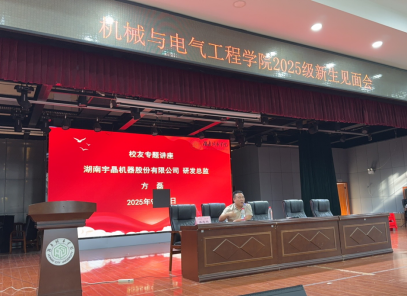9月16日下午,机械与电气工程学院特邀2018届优秀校友、湖南宇晶机器股份有限公司研发总监方磊返校,为2025级全体新生作题为《规划青春航程,成就精彩未来》的专题讲座。学院党委副书记易志明、辅导员代表及500余名新生参加了活动。