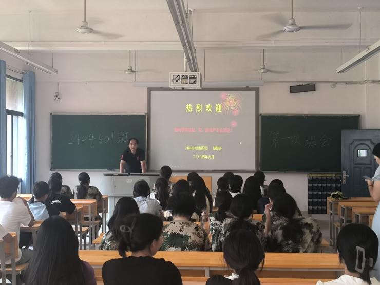 本网讯 (通讯员 黄柱星)2024 年 9 月9日至9月11日,我院在管理楼陆续召开了 2024 级新生各班级开学第一次班会,各班主任、辅导员及全体新生参加。