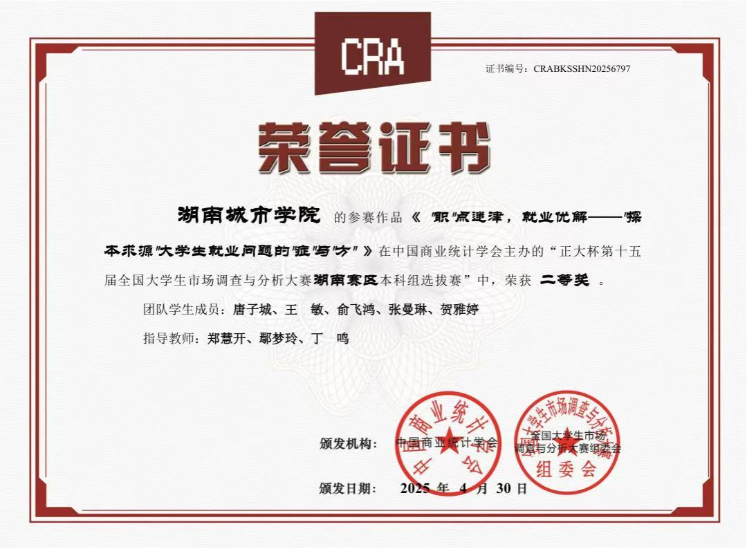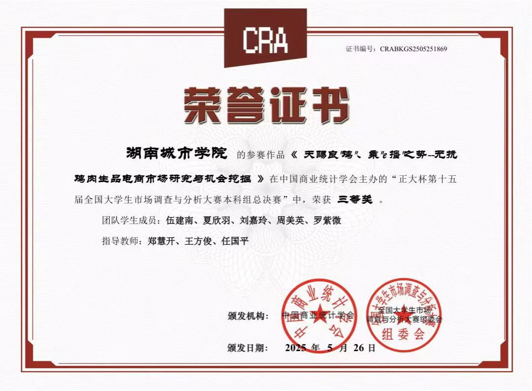 米兰体育网页版对本次赛事给予高度关注,在教务处的全力支持下,管理学院郑慧开等9位老师组成专业指导团队,精心筹备赛事组织与备赛指导工作,凭借科学规划与积极动员,吸引众多学子踊跃报名参与比赛。经过校内选拔赛,共有7支团队脱颖而出晋级省赛。最后经过省赛队伍激烈的角逐与层层选拔后,我校伍建南、夏欣羽、刘嘉玲、周美英、罗紫微同学在本次大赛全国总决赛中获得国家级三等奖1项。此外,在湖南赛区选拔赛中,我校学子还获得省级一等奖3项、省级二等奖3项、省级三等奖1项。