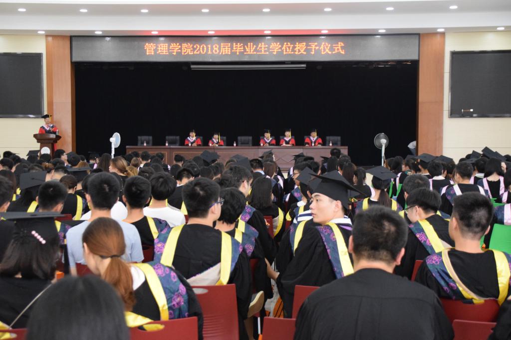 2018年6月21日9:00,管理学院2018届毕业生学士学位授予仪式在学生活动中心顺利举行,到场的嘉宾有管理学院院长李教明,党委书记汤腊梅,副院长汤勇、赵旭,专业教师龙敬庭、李双清、昌晶亮,同时管理学院2018届全体毕业生按时与会。