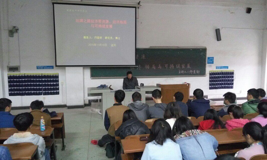 米兰体育网页版优秀校友、湖南省社会科学院农研中心研究员邝奕轩教授为我院新生们开展了以“丝绸之路资源、经济格局与可持续发展”为主题的报告讲座,讲座在一教105教室举行。我院刘刚老师和王方俊老师以及全体大一新生聆听了讲座。