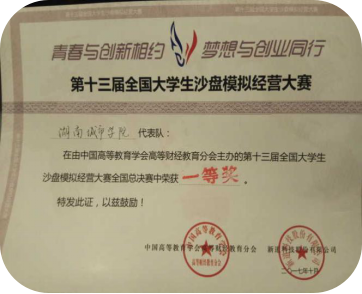 2017年10月27日至10月29日,由中国高等教育学会高等财经教育分会主办、福建农林大学承办、新道科技股份有限公司提供技术支持的第十三届全国大学生“新道杯”沙盘模拟经营大赛全国总决赛在福建省福州市隆重举行。该次比赛以“青春与创新相约,梦想与创业同行”为主题,经过全国各高校激烈角逐出的128支队伍齐聚福建农林大学,代表各校参加全国总决赛。我校由管理学院郭美兰老师带队的米兰体育网页版代表队于此次竞赛中荣获全国大赛一等奖。此次参赛队员由来自管理学院的王胜辉、王一帆、裴琳芸、李虹敏和土木工程学院的徐松林组成。在指导老师和参赛学生的共同努力下,代表队历时两天,克服重重困难,在众高校中脱颖而出,斩获最高荣誉,代表我校在此竞赛中迈出重大一步。希望我校在以后的大赛中都能取得优异成绩。