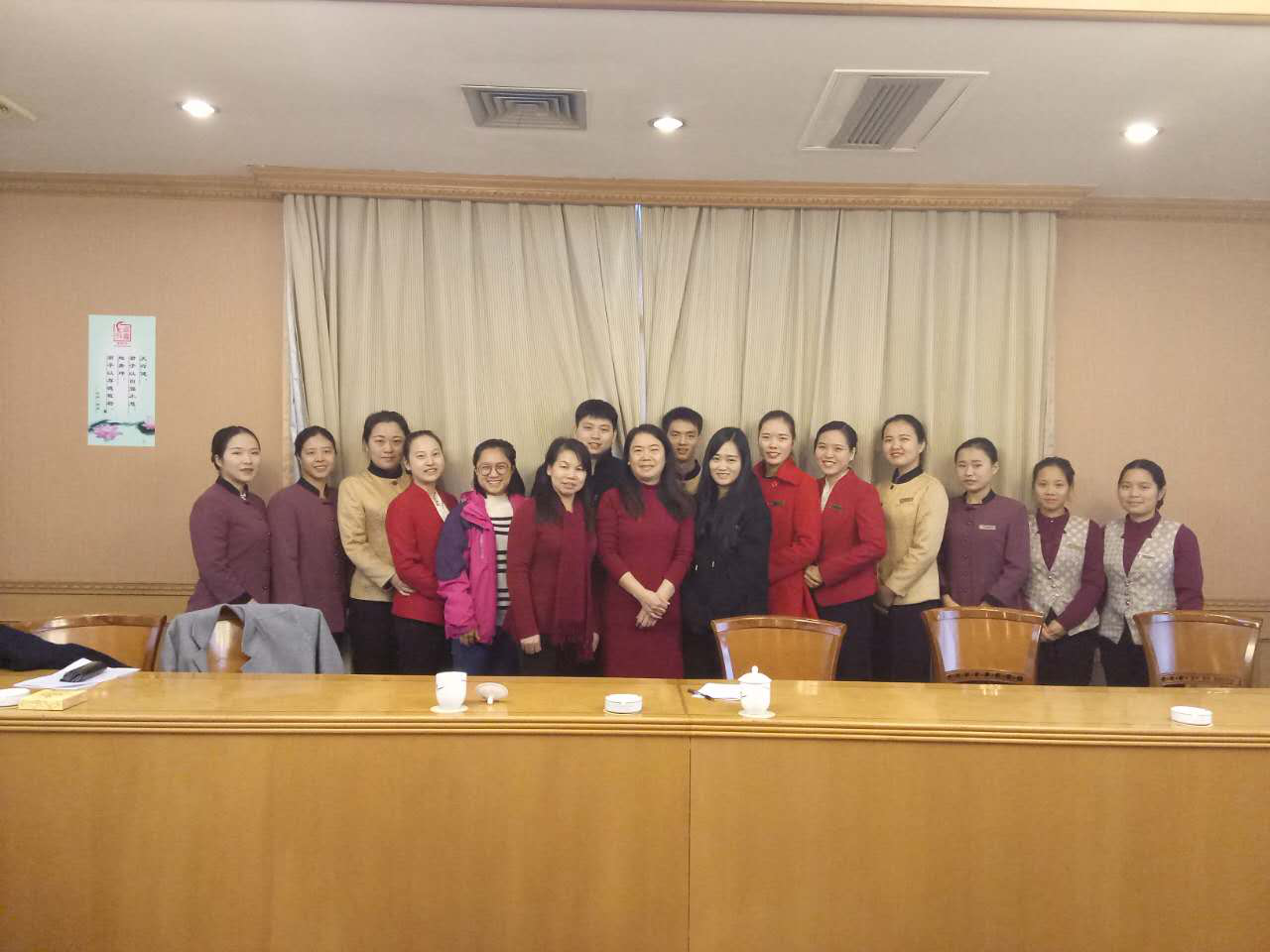 2016年12月25日,米兰体育网页版党委党员、纪委书记姚春梅教授、米兰体育网页版管理学院院长汤腊梅教授,顶着寒风细雨来到湖南宾馆,深入实习基地检查指导实习工作并看望在这里实习的商学院的学生。