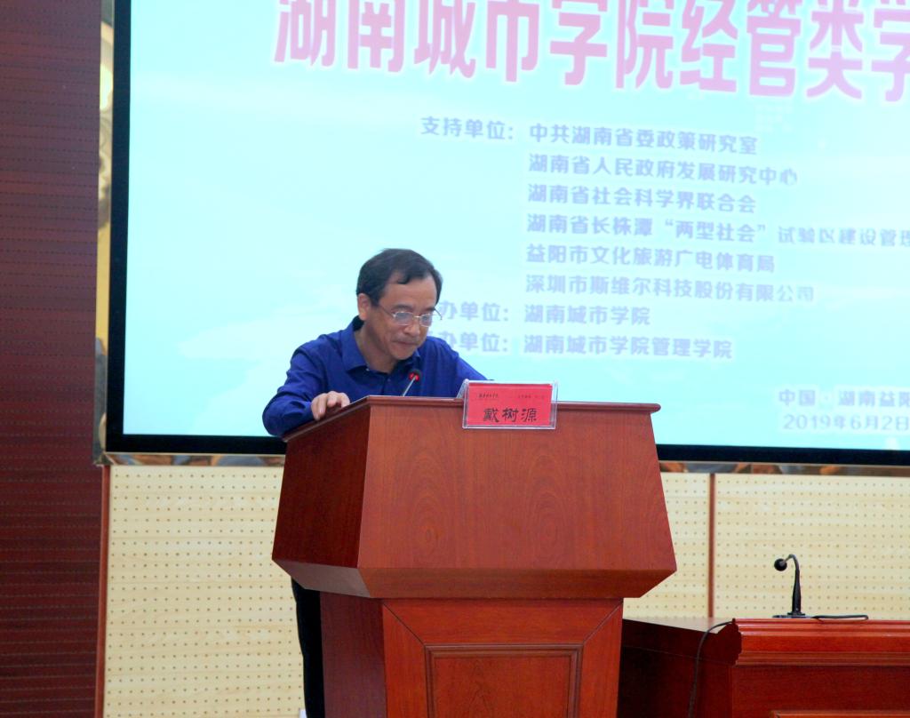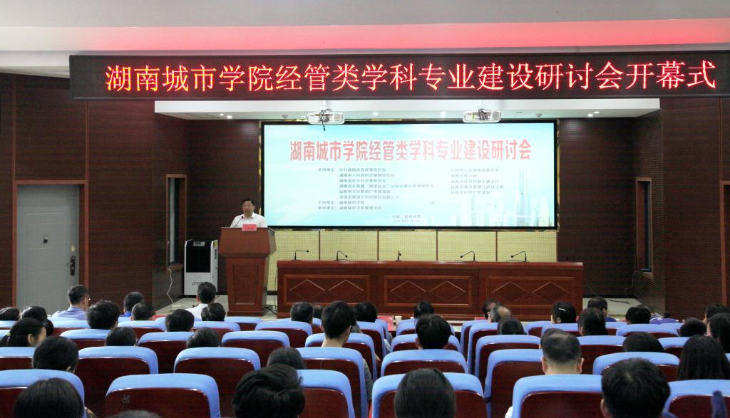 为深入贯彻落实全国教育大会精神,坚持以本为本,切实提高人才培养质量,加强我校经管类学科专业建设,6月2日管理学院承办了由学校主办的经管类学科专业建设研讨会。研讨会开幕式在建筑规划楼举行。应邀出席开幕式的有湖南省委政策研究室、中国致共党湖南省委员会、湖南省人民政府发展研究中心、湖南省社会科学界联合会、湖南省长株潭“两型社会”试验区建设管理委员会、益阳市城市管理行政执法局、益阳市房地产管理局、益阳市文化旅游广电体育局等单位的领导,以及深圳市斯维尔科技股份有限公司、湖南泽华私募股权基金管理有限公司等单位负责人。出席会议的学校领导有校长李建奇、党委副书记汤放华、副校长郑卫民、副校长谭献良等。参加会议的还有教务处、人事处、科研处、学科建设与发展规划处领导,以及管理学院全体教职工和学生代表共150余人。