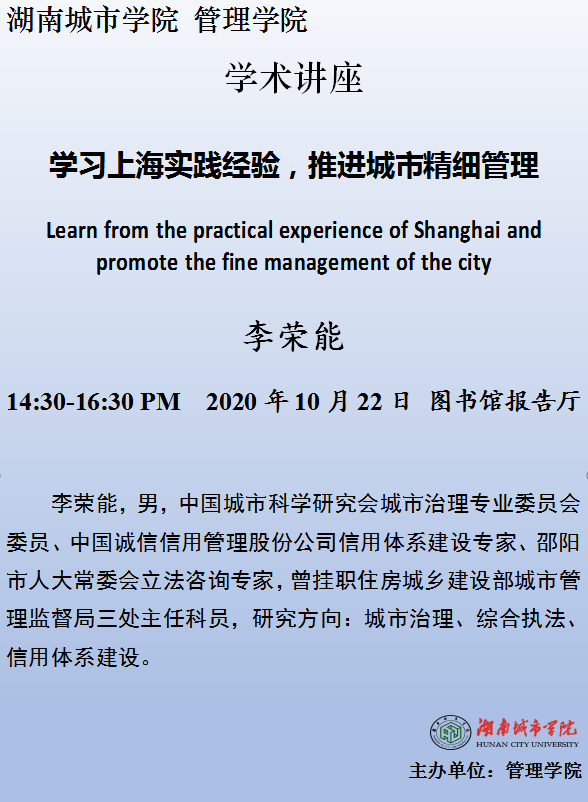 【学术讲座】16 李荣能:学习上海实践经验,推进城市精细管理