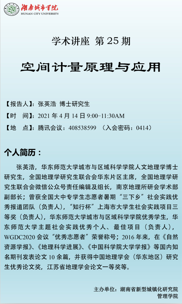 【管院科研论坛】25张英浩 博士生:空间计量原理与应用