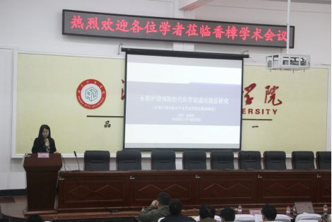 第三位汇报人是来自中央财经大学的杨晓旭,汇报的题目是《长期护理保险对子女劳动供给的影响研究》。报告使用中国家庭追踪调查(CFPS)2014、2016、2018和 2020年四年的数据,对父代参加长护险对子代劳动参与率、劳动供给强度和劳动收入的溢出效应进行了分析,并对其中存在的性别和年龄异质性进行了检验。结果表明:父代参加长护险显著降低了子代的劳动参与率,减少了子代的超负荷工作时间,并且提高了子代的主要工作收入和非经营税后总收入。且长护险影响子代劳动供给的溢出效应在性别和年龄两个维度存在异质性。本研究初步证实了长护险政策对优化子代劳动供给结构的积极影响,为政府引导长护险发挥最佳政策效果以提高社会效率和家庭福利提供了相关启示。