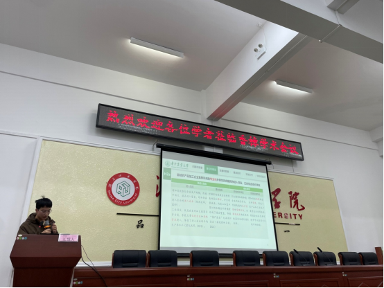 第二位汇报人是来自华中农业大学的张拓,汇报的题目是《集聚外部性、企业动态演化与县域农产品加工业TFP增长》。报告从企业动态演化的视角,将县域经济社会指标与微观企业数据进行贯序匹配,检验集聚外部性对 TFP增长的影响,并利用动态 Olley-Pakes(DOP)框架对企业演化效应进行分解,考察不同类型外部性提升县域 TFP的作用机制。研究发现:县域农产品加工业集聚外部性对企业动态演化影响显著;专业化外部性阻碍高效企业进入的同时,加速低效企业退出,显著提升在位企业的成长水平和资源配置水平,整体提升了县域农产品加工业 TFP;多样化外部性显著加速低效企业退出,并促进在位企业自身成长,从而提升TFP,但“挤出效应”使得高效在位企业的资源再配置效率难以拔高,加之缺乏正向的进入效应,因此多样化外部性整体抑制了 TFP增长,但这种抑制作用并不显著;尽管竞争外部性能够激励高效企业进入、加速低效企业淘汰,但由于价格战及与其它行业竞争资源中处于劣势等因素,在位企业难以实现自身成长、资源配置效率下降,因此它显著地阻碍了 TFP的增长。