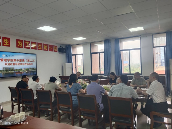 本网讯(通讯员  尹罡)6月6日下午,为深入贯彻落实学校关于做好新一轮本科教育教学审核评估系列工作精神,进一步提升学院教师的整体教育教学水平,管理学院在管理楼622室举行第二轮集体“磨课”活动。本次活动特邀学校教学督导团团长方乐教授亲临现场指导,管理学院院长汤勇、副院长刘刚以及学院督导团全体成员参加听课,“磨课”活动由副院长刘刚主持。