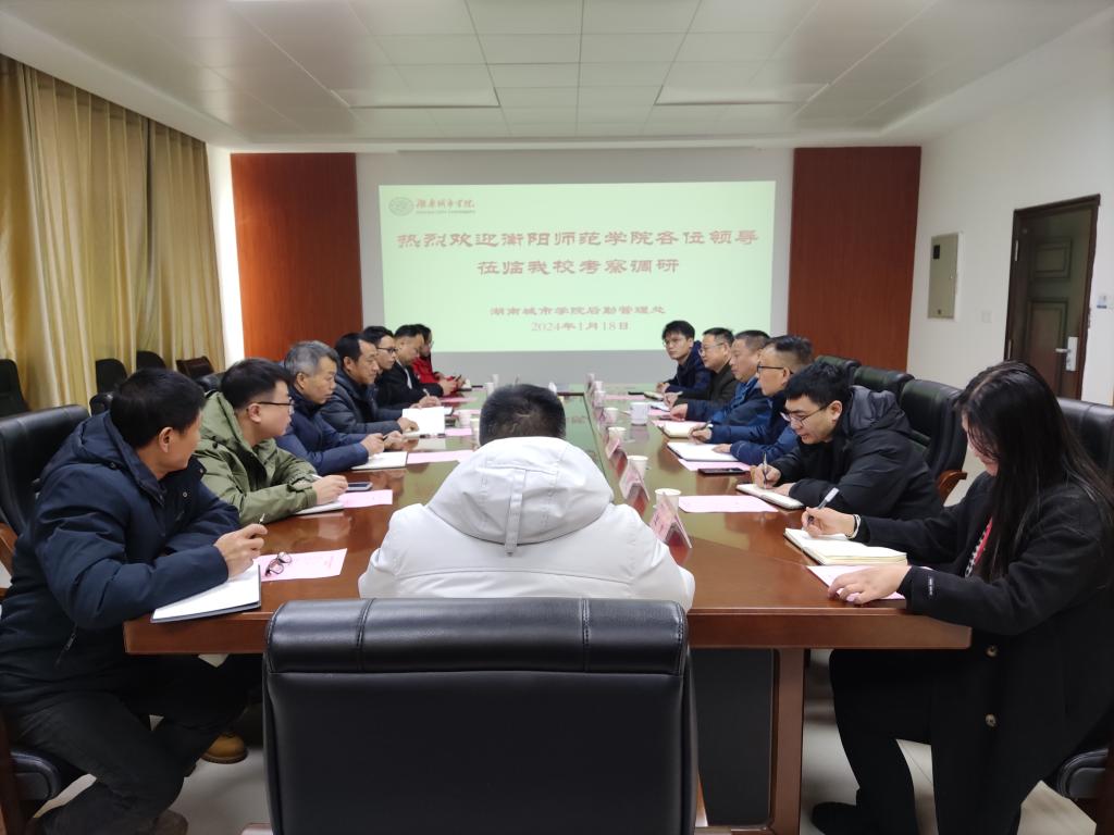 (撰稿 曾宁亮)1月18日下午,衡阳师范学院后勤处处长常生良一行来我校考察调研。我校后勤管理处处长钟雪飞、副处长肖萼国、秦科及有关科室、中心负责人与来访客人在二办公楼420会议室进行了座谈交流。