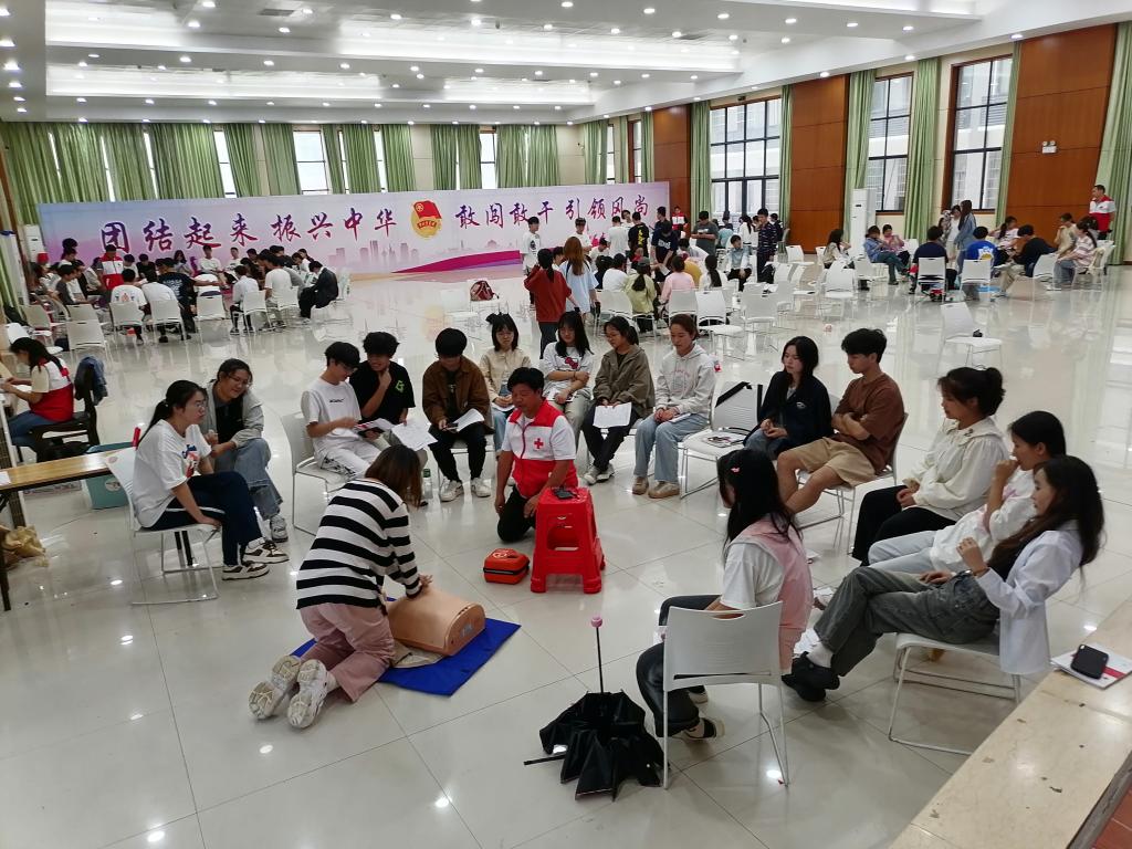 (撰稿 杨新成)为进一步提高我校师生的基本救护技能,提升全校师生应对突发事件和意外伤害事故的自救互救能力,保障师生健康和生命安全,5月30日,由我校后勤管理处主办,益阳市红十字会承办的“救在身边,生命教育——2024年心肺复苏(CPR+AED)培训班”在我校学生活动中心开班,130名大学生参加培训。