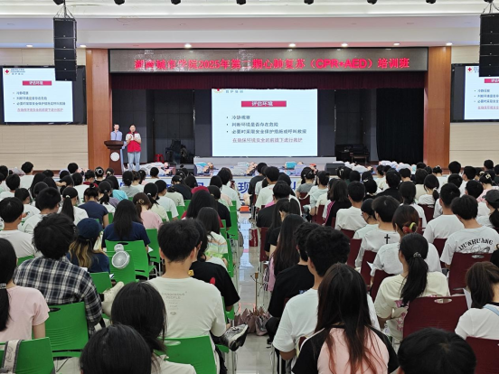 (杨新成 撰稿)为进一步提高我校师生的应急救护技能,保障师生健康和生命安全,6月7日,在益阳市红十字会的指导下,千人心肺复苏培训活动在我校学生活动中心开展,包括学工系统教职工、团校培训学员、新生军训学生教官等在内的千余名师生共同参加了培训。