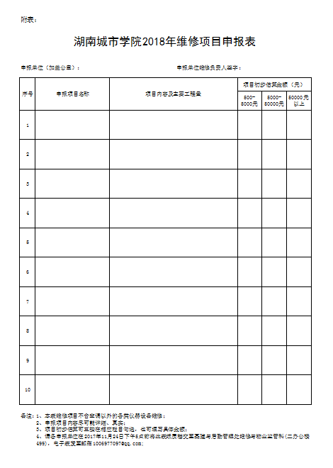 附表:《米兰体育网页版2018年维修项目申报表》