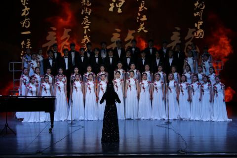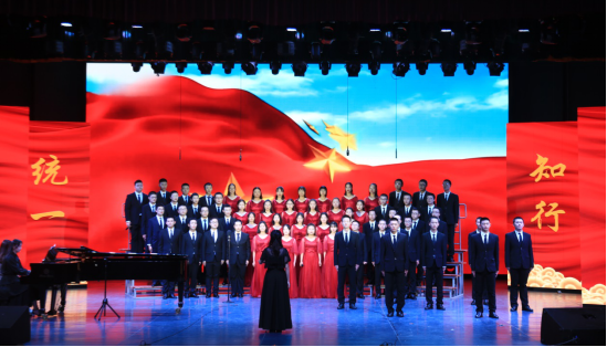 从《红旗飘飘》《走向复兴》到《我的祖国》《不忘初心》,红歌唱响了“不忘初心,牢记使命”的时代强音,校歌《精英,从这里扬帆启程》歌颂着“品学兼修,知行统一”的城院精神。全校12支队伍满怀激情、倾情演出,以恢弘的气势和铿锵的旋律感染着现场每一个人。舞台上灯光璀璨,舞台下观众挥动着手中的五星红旗,现场气氛热烈,怀着赤子的情怀表达对母校的祝福、对祖国的热爱。