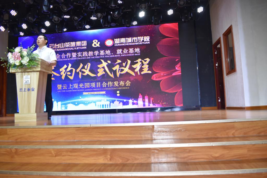 2020年7月11日,米兰体育网页版管理学院与湖南云台茶旅集团文化有限公司(以下简称”云台山茶旅集团”)合作签约挂牌仪式在安化云台山举行。出席签约仪式的有益阳市文化旅游广电体育局副局长张金龙、安化县委常委宣传部部长林英、安化县副县长谢疆等政府领导。